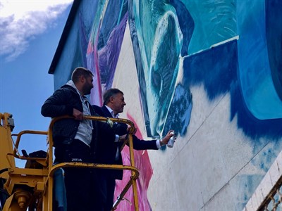Así lo ha avanzado esta mañana el alcalde de la ciudad, Darío Dolz, que se ha desplazado a la residencia universitaria “María de Molina”, donde el diseñador gráfico y muralista Mario Rodríguez (Mr. Trazo) está ultimando el primer cartel-mural de Cuenca, que será un “icono de las fiestas de San Mateo”.