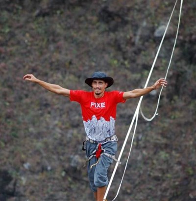 El joven de 22 años, natural de Las Palmas de Gran Canaria ha realizado esta práctica en otras ocasiones como en el Barranco de Moya en la isla de Gran Canaria, donde caminó sobre la cuerda situada a 200 metros de altura.