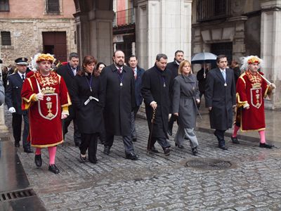 La comitiva partía pocos minutos antes de las 12 del mediodía desde los arcos del Ayuntamiento y acompañada por los acordes de la Banda Municipal de Música llegaba hasta la Catedral.