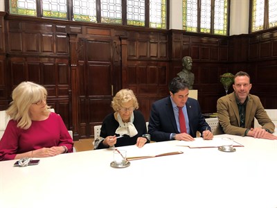 El Grupo de Ciudades Patrimonio de la Humanidad de España y el Ayuntamiento de Madrid, a través de Madrid Destino han renovado hoy una colaboración que empezó en 2005 para mejorar el posicionamiento y aumentar el conocimiento de todos los destinos que representan en sus mercados estratégicos. Ángel Mariscal, alcalde de Cuenca y presidente del Grupo de Ciudades Patrimonio de la Humanidad de España y Manuela Carmena, alcaldesa de Madrid y presidenta del Consejo de Administración de Madrid Destino, han suscrito esta mañana el protocolo de colaboración anual con las acciones contempladas en este plan, que se desarrollará tanto a nivel nacional como internacional, consistirán principalmente en la promoción y comercialización conjunta y en la rentabilización de las nuevas tecnologías como canales de promoción turística.