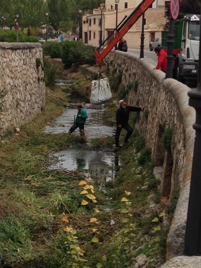 En estos días técnicos municipales están procediendo al desbroce y limpieza de toda la zona del río Huécar, que incluye el uso de una grúa para ayudar en la retirada de todos los elementos desechables. El objetivo es sanear todo aquel espacio y dejarlo en óptimas condiciones.