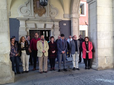 El alcalde, Juan Ávila, miembros de la Corporación Municipal y trabajadores del Ayuntamiento de Cuenca han guardado hoy un minuto de silencio, a las puertas de la Casa Consistorial, en recuerdo de las víctimas del atentado del 11 de marzo de 2004 en Madrid.