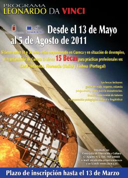 “Leonardo Avanza” es el nombre del proyecto de formación para jóvenes que el Ayuntamiento de Cuenca presentó a la convocatoria de Programas de Movilidad Leonardo da Vinci, creado por la Unión Europea para promover un Espacio Europeo en materia de Educación y Formación Profesional.